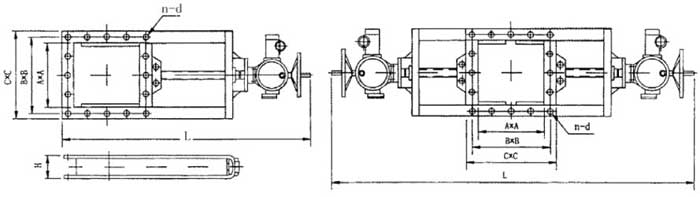 手動雙向平板閘閥主要由框架、絲桿螺母、手輪、鏈輪、閘板組成,手輪(鏈輪)轉動,絲桿帶著絲桿螺母和閘板作水平方向的往復運動,達到閥門的啟閉目的。手動平板閘閥廣泛適用于建材、冶金、礦山等行業(yè)粉塵物料流量控制的管道上。是控制粉塵物料流量的理想設備。